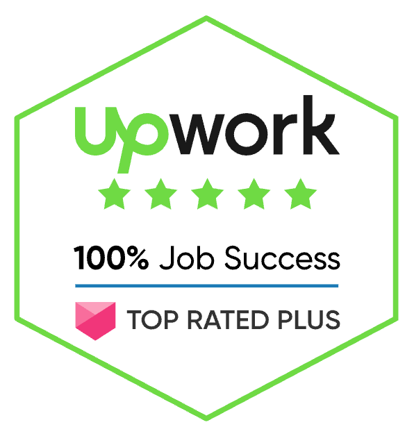 Recognized on Upwork for top-rated plus freelancer status with consistent 5-star reviews.
